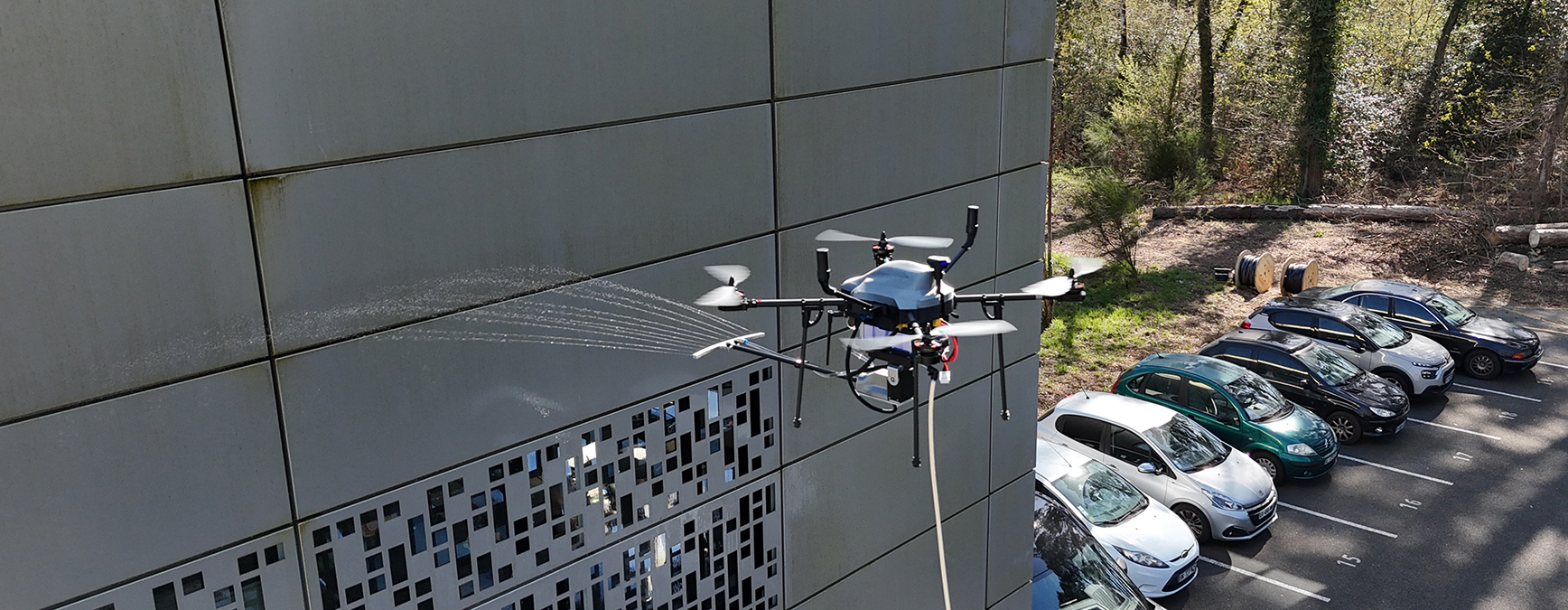 Le drone permet d’intervenir efficacement sur des surfaces difficiles d’accès : façades, toitures, panneaux photovoltaïques ou structures industrielles.